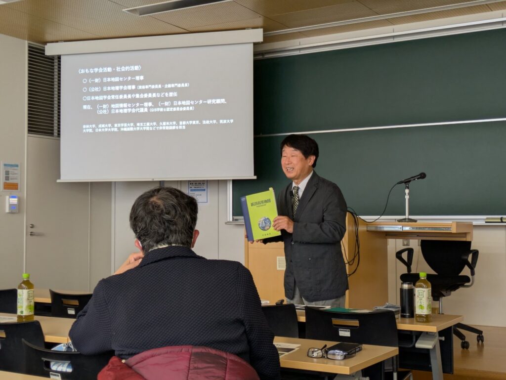- 総会前には、地球環境科学部地理学科教授の鈴木厚志先生による「地図のことを考える10題」と題してご講演を行っていただき、参加された皆様は興味深く聞き入っていました。