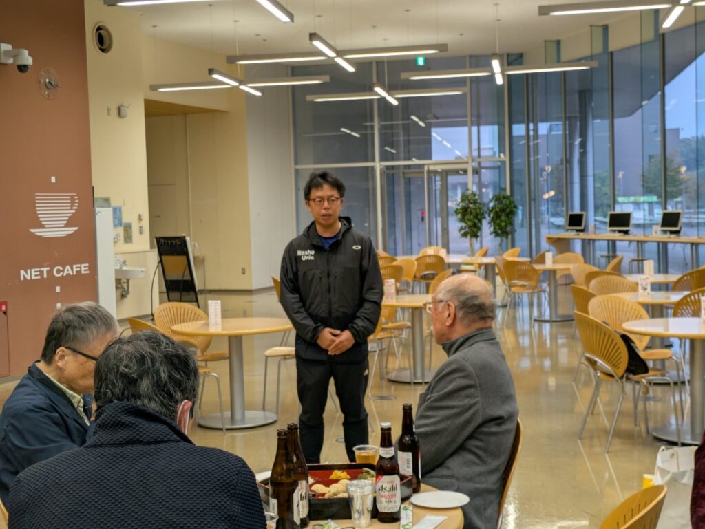 - 懇親会は、キャンパス内のネットカフェにて開催し、陸上競技部駅伝部門の服部監督にもご参加いただき、駅伝部の学生の話などをお聞きして、和やかに楽しい時間を過ごすことが出来ました。