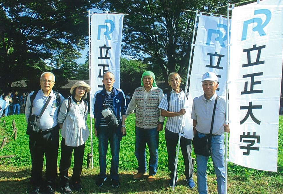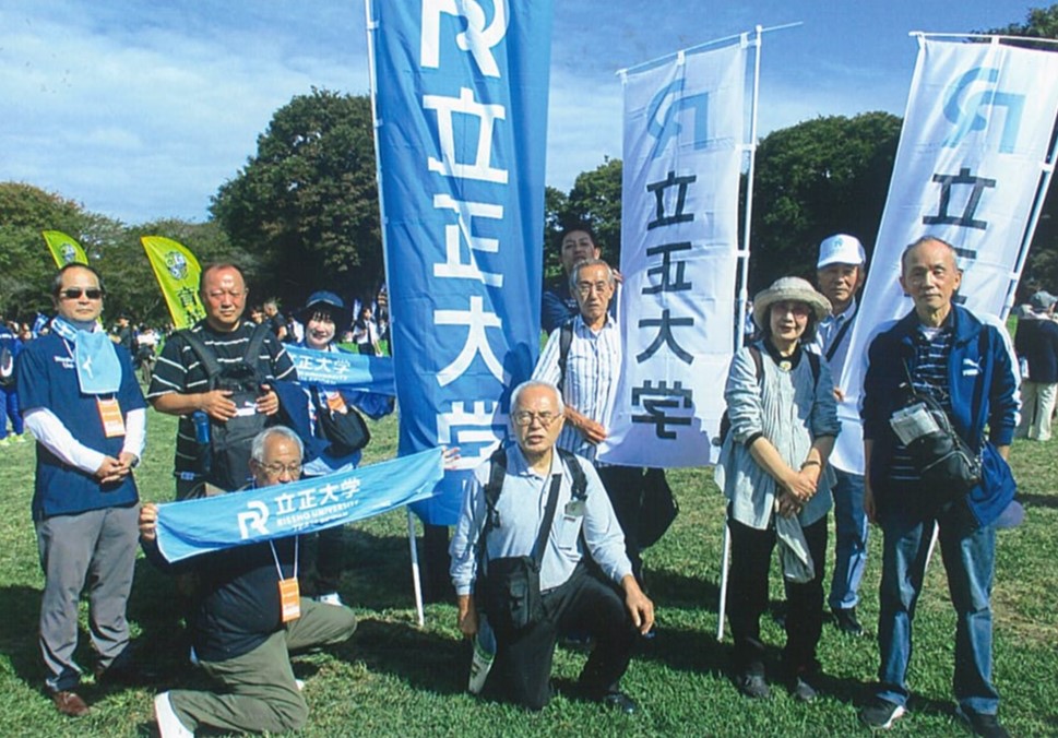 - 卒業生の応援ですが、集合場所には6名の方のみと心細かったのですが、「立正大学の旗」をみて